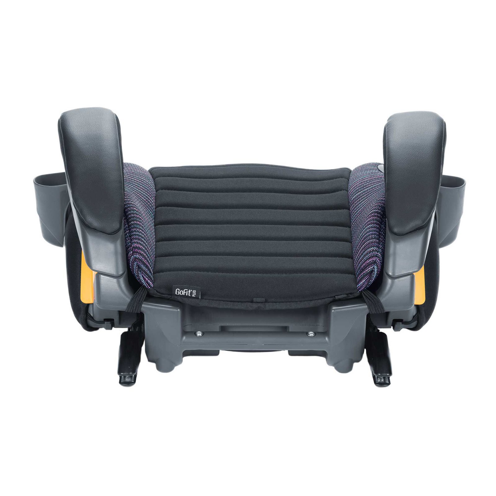 Grab and Go Convenience The Chicco GoFit® ClearTex® Plus Backless Booster is equipped with to help stabilize the seat while the child gets in and out and also keep it in place when unoccupied. An innovative quick-release design means one-hand removable with a simple pull of the release handle which makes for grab-and-go convenience when switching vehicles.