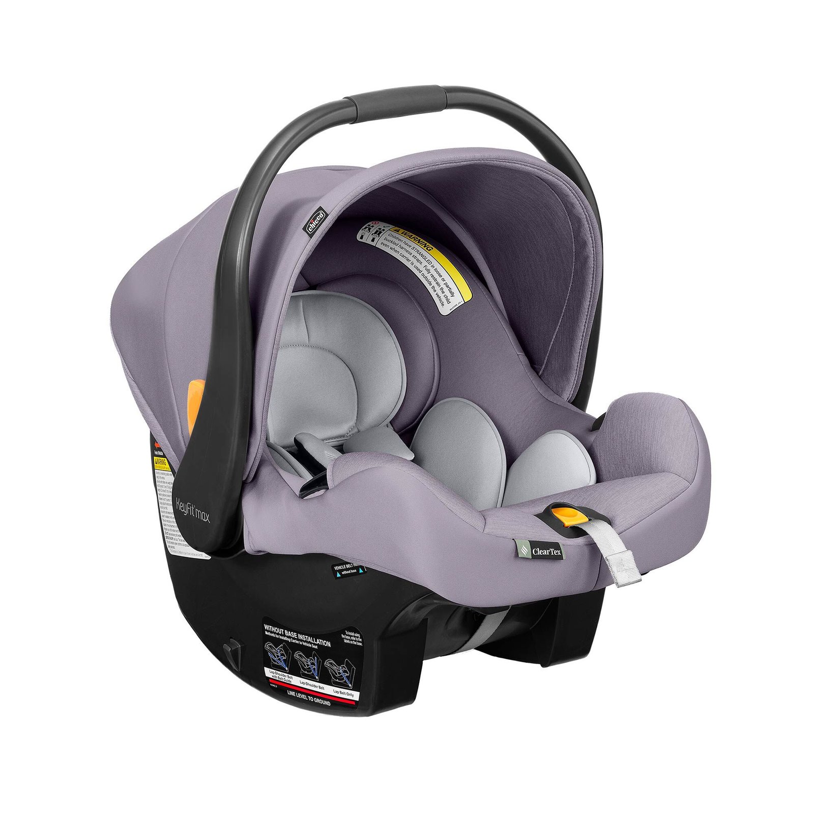 KeyFit® Max ClearTex® offers click-in attachment for effortless mobility with compatible Chicco strollers. When traveling or on-the-go, integrated provides 3-points of contact for a secure, carrier-only installation.