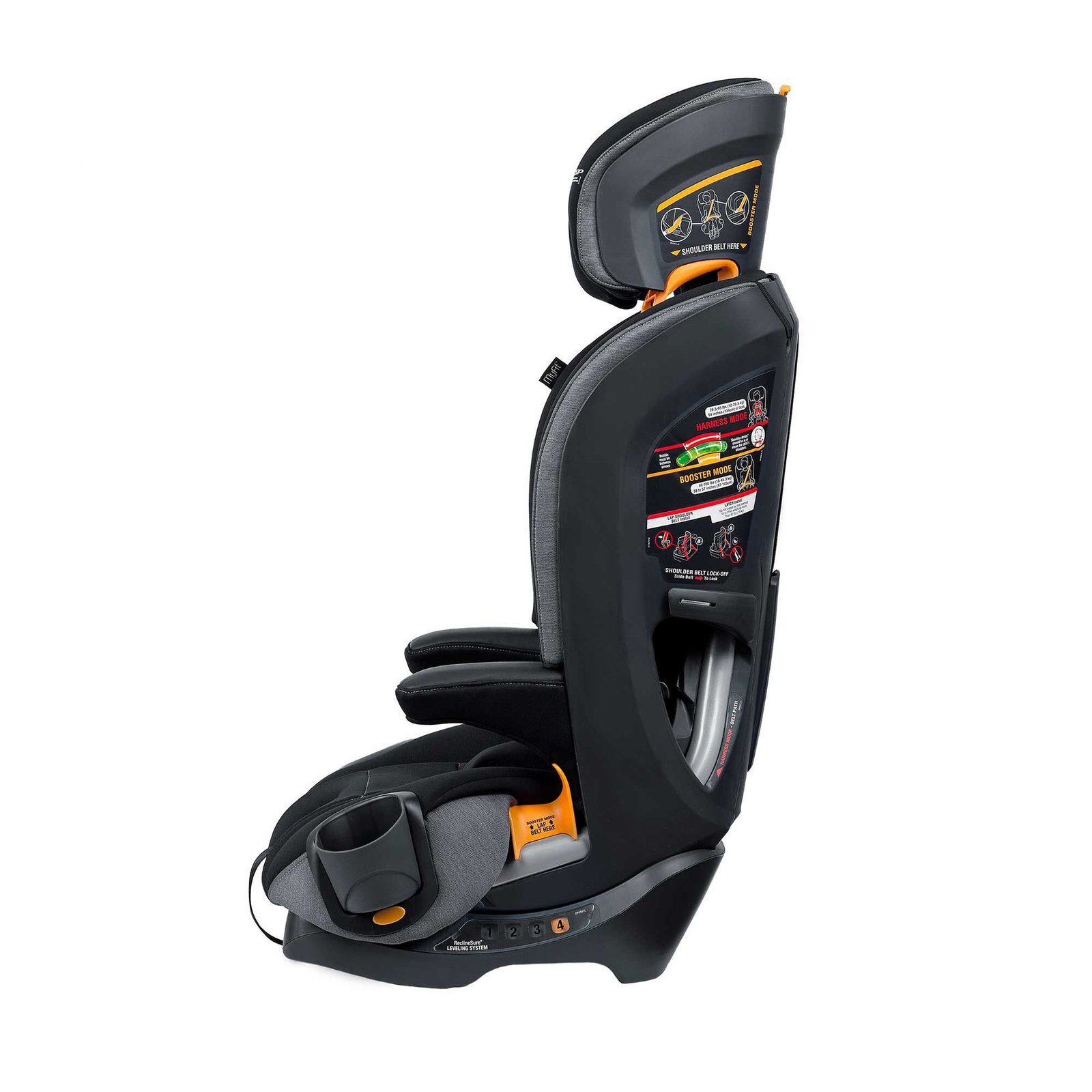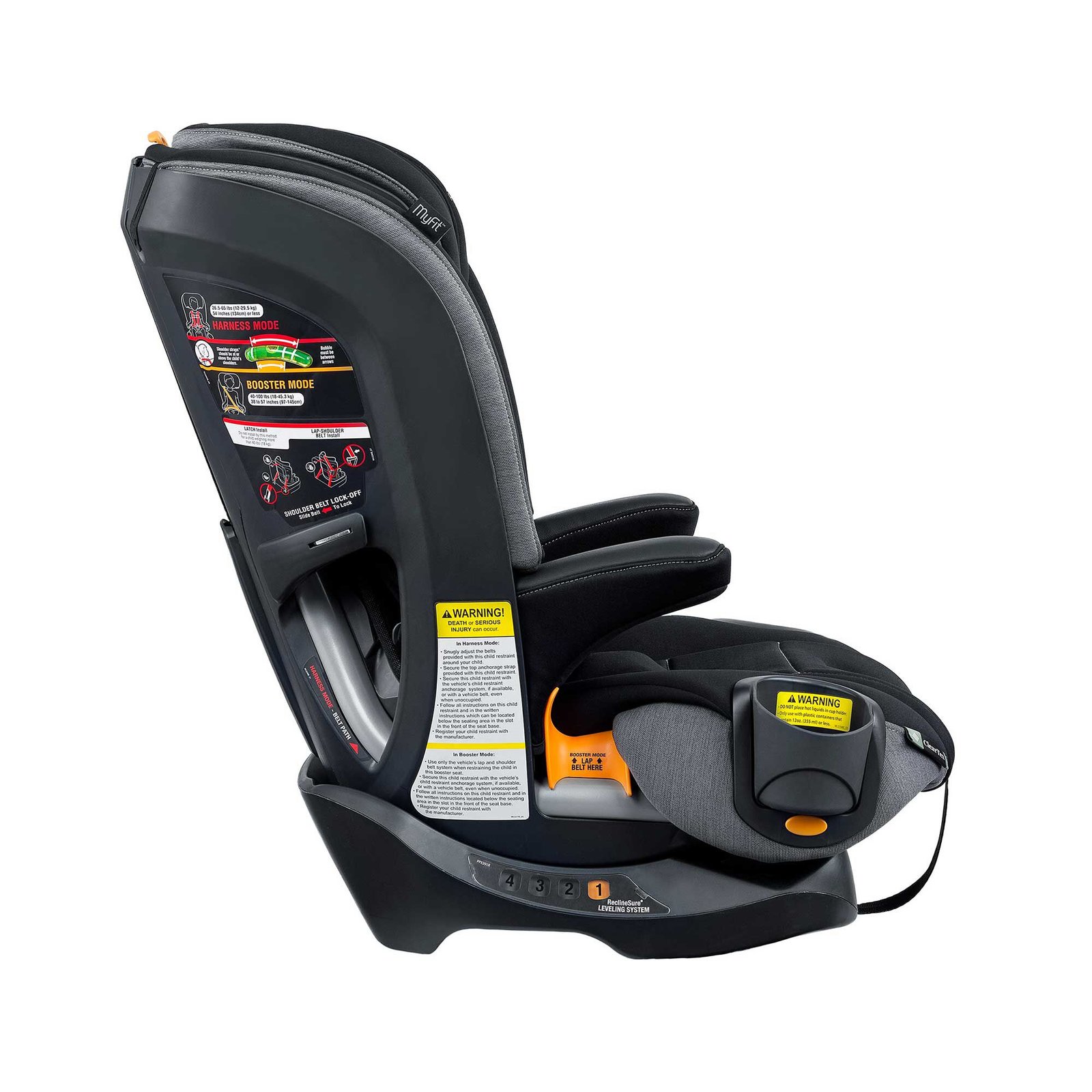 2-in-1 Comfort & Security The Chicco MyFit® ClearTex® Harness + Booster Car Seat is designed to grow with children from toddler through big kid with easy transition from forward-facing five-point harness to booster mode. Nine headrest positions accommodate growth throughout both modes and work together with a four-position recline to support proper posture. An extra-deep seat with padding is ergonomically designed for superior comfort. Featuring flame retardant-free materials, MyFit® ClearTex® is GREENGUARD Gold Certified for low chemical emissions, contributing to healthier air quality around your child.