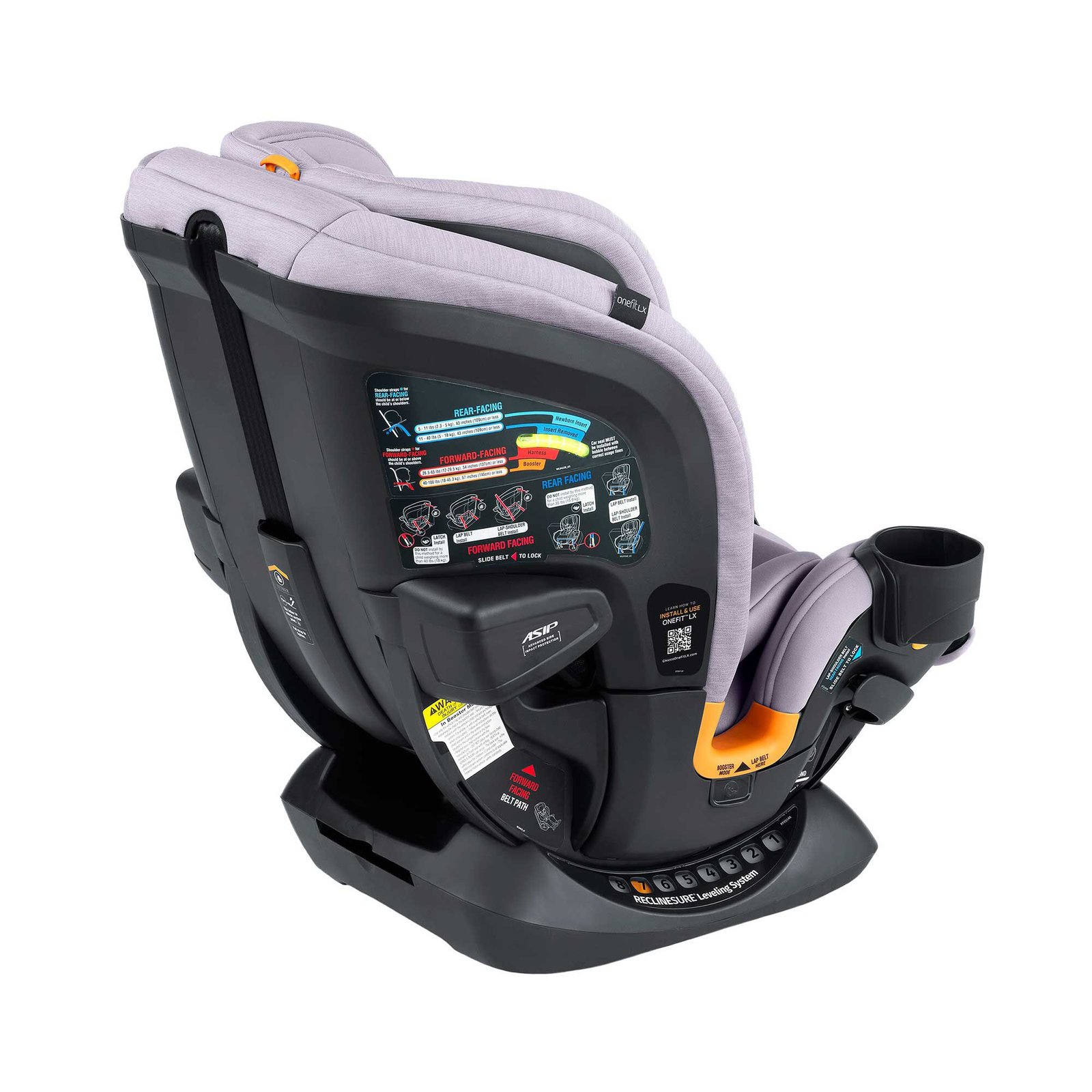 Scan the on-product QR code to access instructions on how to install, use and clean your all-in-one car seat