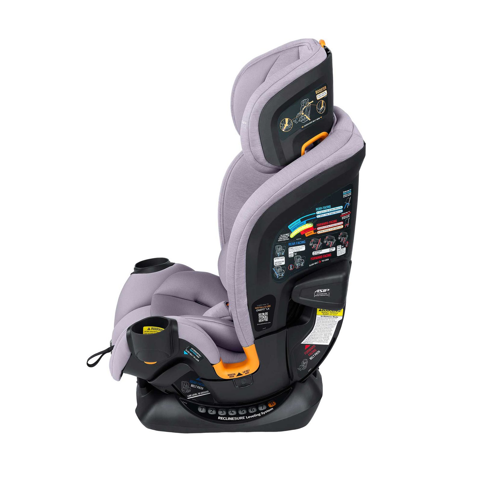 Fits Your Child Designed for superior child comfort, OneFit™ LX provides extra rear-facing legroom and multiple recline options in every mode of use. With the widest range of height adjustments, the easy-adjust headrest system adjusts with the harness to grow with your child.
